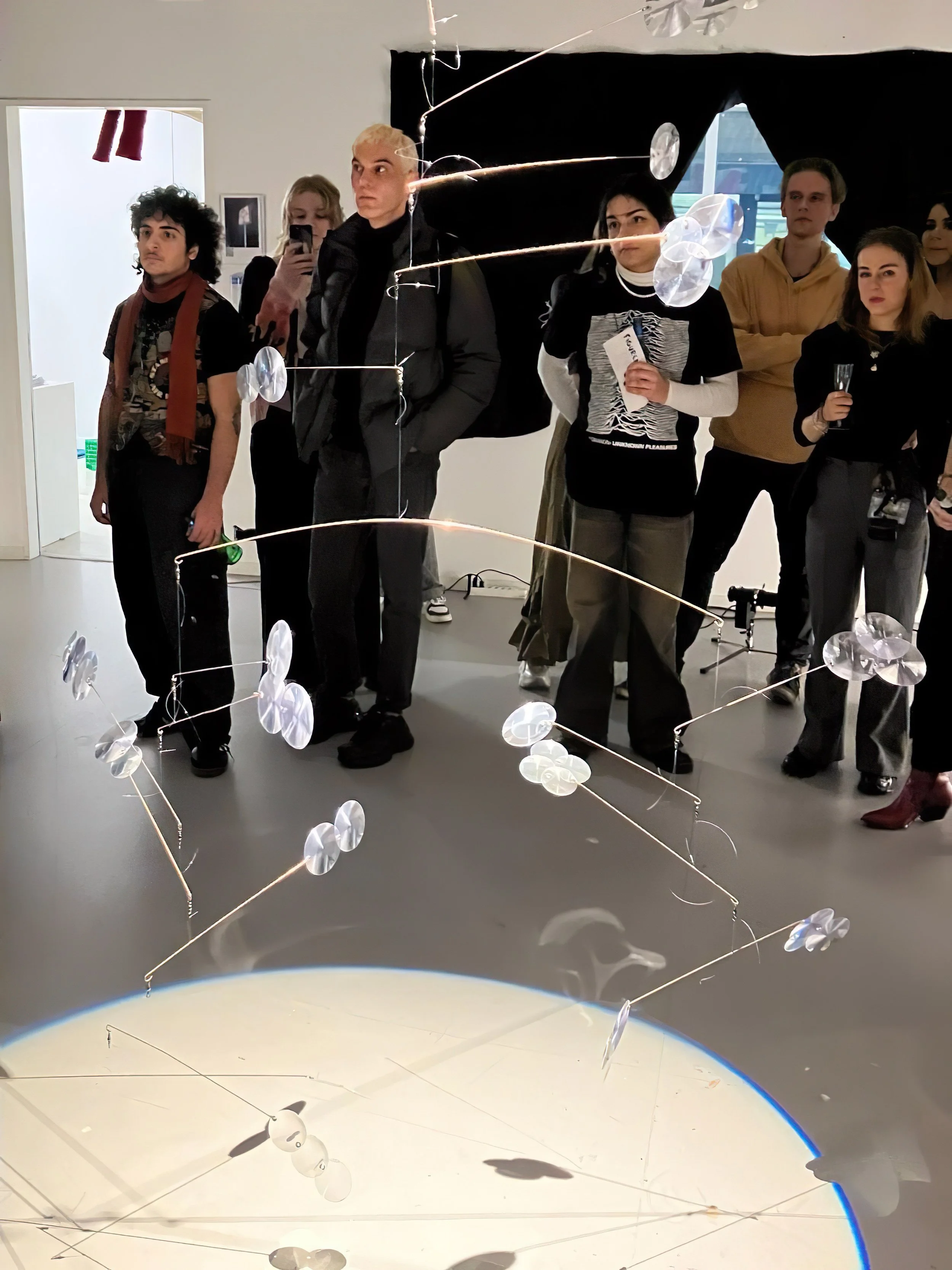 Nies is a project that combines a surrealist text with a physical object to explore the concept of identity and its mutability. The text «Tanz des Seins» (translates to «Dance of Beings») reflects on the complexity of being and the constant recreation of the self. The accompanying object, a mobile made of steel wires and magnifying glasses, embodies and expresses these ideas by merging with the text. It was created as part of our semester exhibition on the class topic of “Figurentheater“ (translates to “Puppet theatre“). There were repeated performative sequences during the exhibition in which the text was recited.