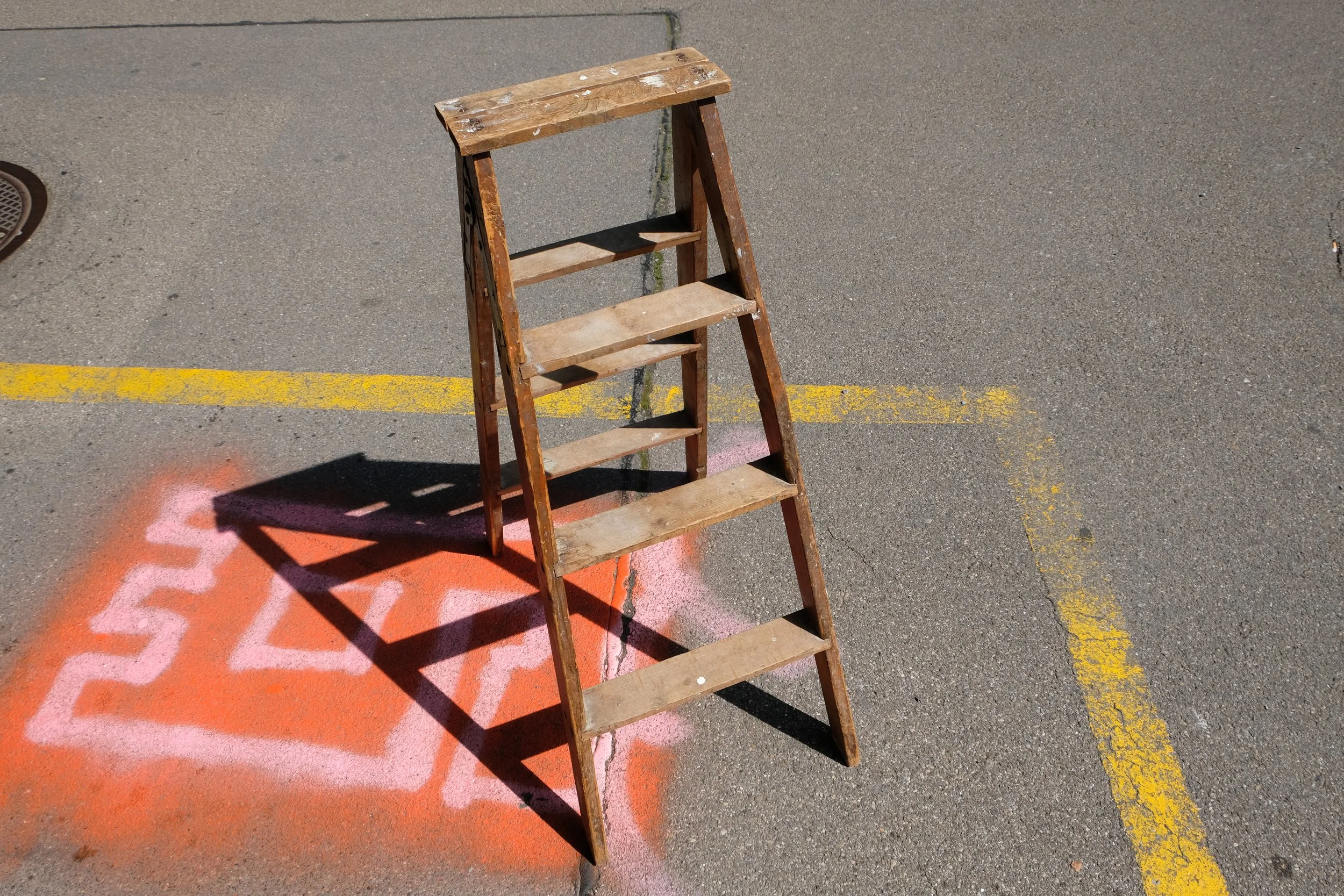 In the photo series “Hafturlaub“(translates to “Parole”), i take a ladder on an exploratory tour through urban landscapes. This ten-part series is a visual exploration of the ways in which the role and perception of the ladder changes when placed in unfamiliar environments. A poem from the perspective of the ladder was written alongside the photographs, capturing their experiences on this journey. This lyrical accompanying text deepens the investigation by capturing the voice of the ladder and thus building a bridge between object, space and viewer. The ladder’s journey, captured in images and words, invites us to reflect on the fluidity of meaning and the transformative power of contemplation.